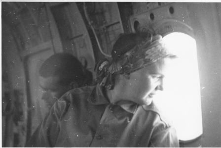 Березина Н.А. в вертолете во время экспедиции в Западную Сибирь, 1969 г.