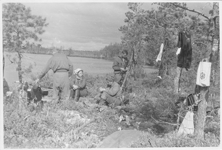 Березина Н.А. во время экспедиции в Западную Сибирь, сидит справа, 1969 г.