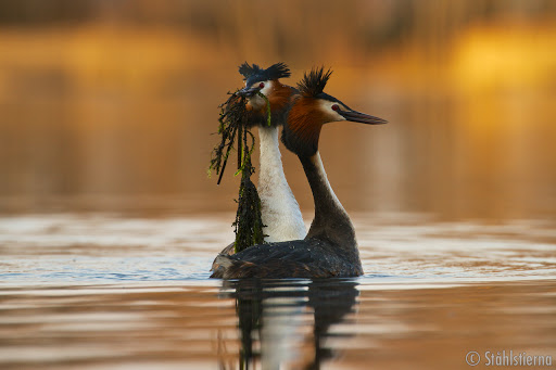 Прилетели нарядные чомги - птицы из семейства поганковых.