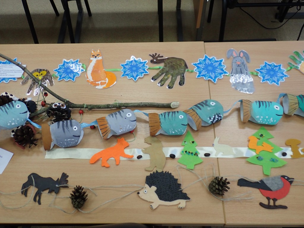 Мы получили 72 конкурсные работы из школ Кирилловского района, детских садов городов Кириллова и Белозерска, а также из поселка Няндома Архангельской области, БУСО ВО "Вогнемский ПНИ". Здесь - и зайчики, и рыбки, и бабочки, и грибочки, и многое, многое другое. Есть гирлянды - аппликации из бумаги с элементами оригами, есть - из фетра, из шишек и еловых веточек.