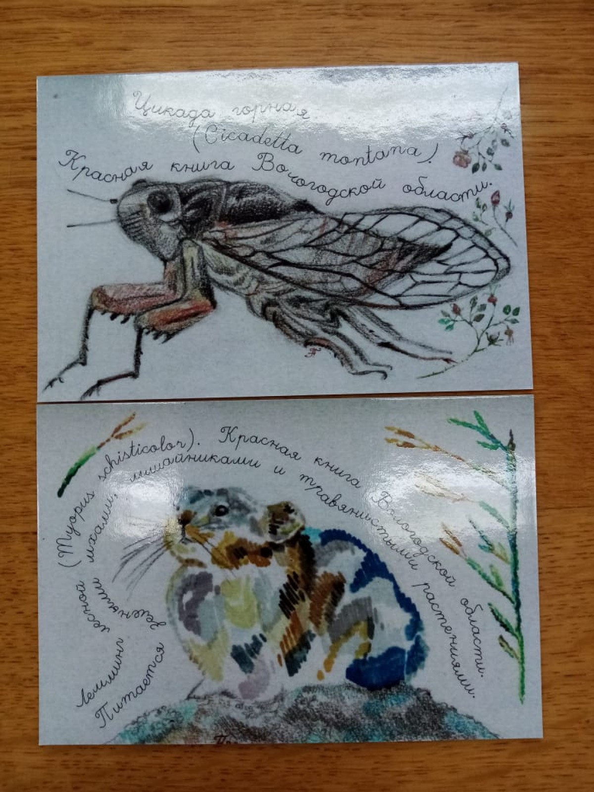 Вся полиграфическая продукция (за исключением газеты) оформлена с использованием рисунков (акварелью, цветными карандашами, тушью и маркерами) редких видов, охраняемых в Вологодской области. Многие из них не так узнаваемы, как, например башмачок настоящий, но также требуют нашей заботы и внимания. Мы очень надеемся, что созданные «экопросовцами» национального парка образы запомнятся обладателям «заповедных» сувенирных вещичек – и это будет небольшим вкладом в дело сохранения биоразнообразия.