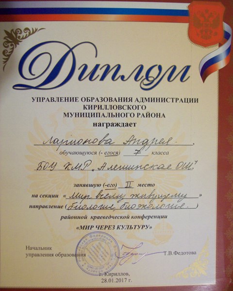 28 января в г. Кириллове Вологодской области прошла традиционная районная школьная конференция «Мир через культуру». На трех секциях были представлены исследовательские работы по историческому, этнографическому, экологическому направлениям. Председателем жюри экологической секции было предложено стать сотруднику национального парка Кузнецовой Людмиле. Всего на конференции было представлено 15 работ, на протяжении нескольких последних лет эта цифра, к сожалению, не растет, что связано как с общей демографической ситуацией в российской глубинке, так и со снижением интереса школьников к исследовательской деятельности. В первые годы своей работы конференция привлекала свыше 40 участников.