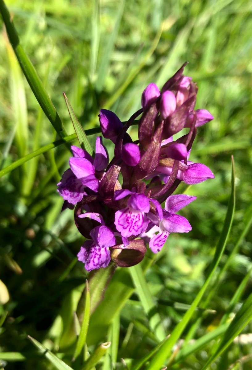 В начале недели мы заметили розоватые цветы редкой северной орхидеи - пальчатокоренника кровавого рядом с дирекцией национального парка.