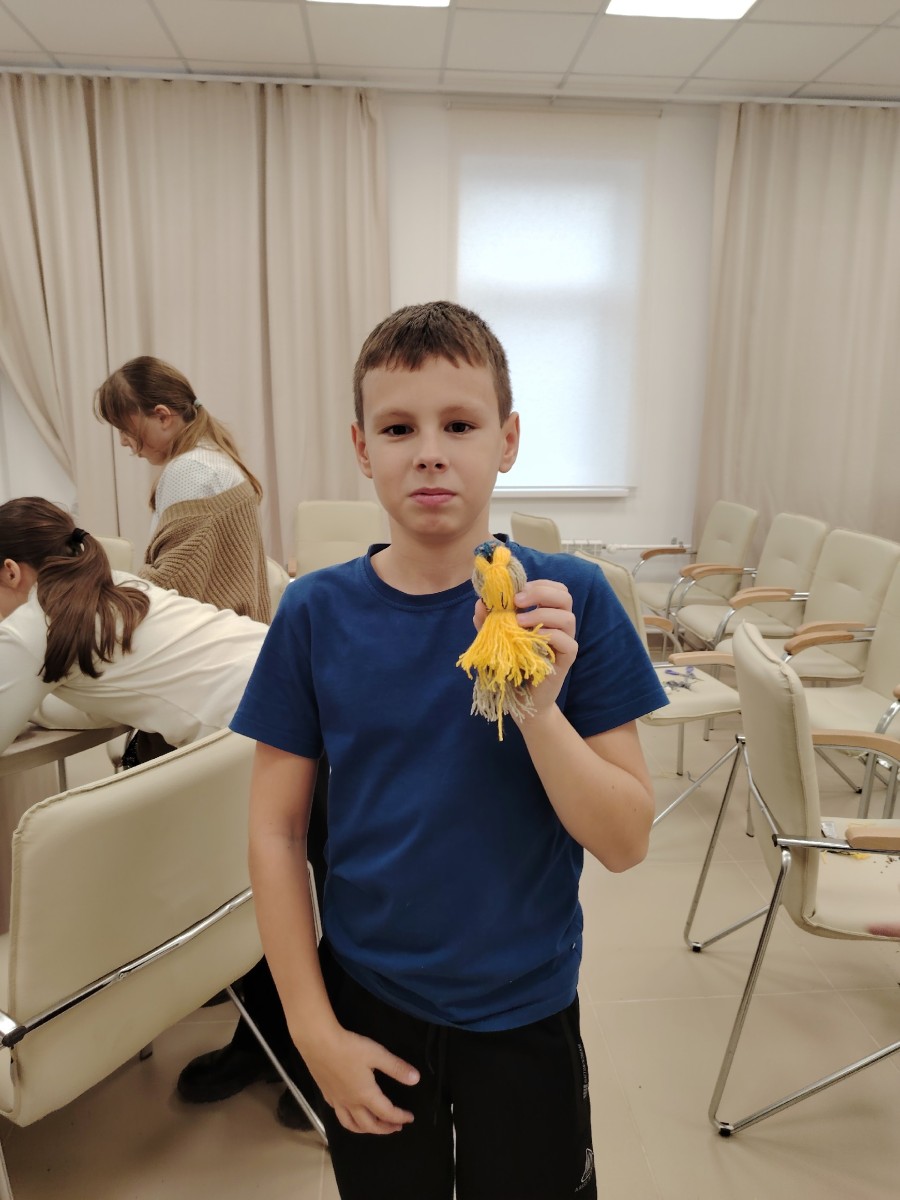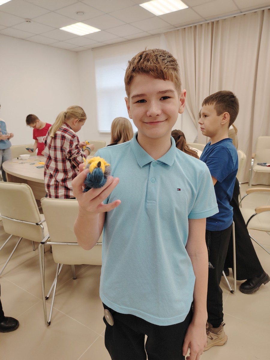 Сотрудники парка провели для ребят занимательный мастер‑класс «Синичка», на котором участники освоили технику создания милых птичек из ниток.