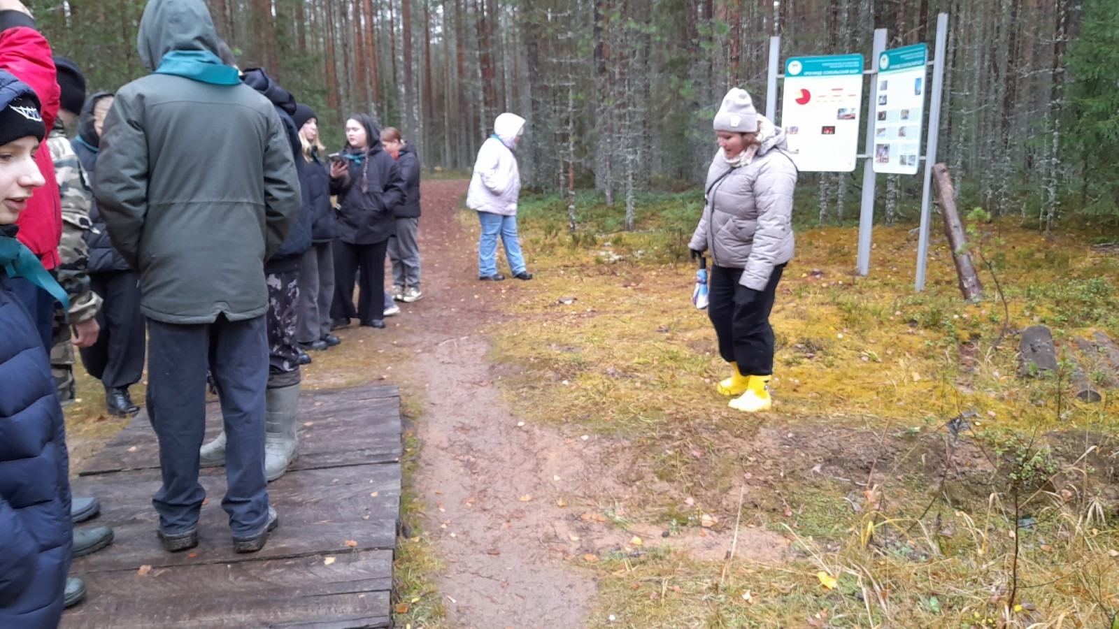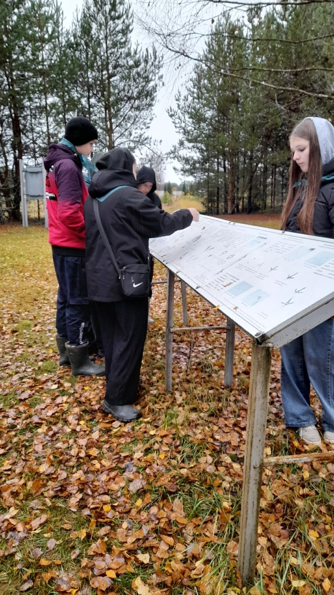 В дни осенних каникул ученики 8Б лесного класса Кирилловской средней школы отправились в захватывающее путешествие по экологической тропе Сокольского бора.