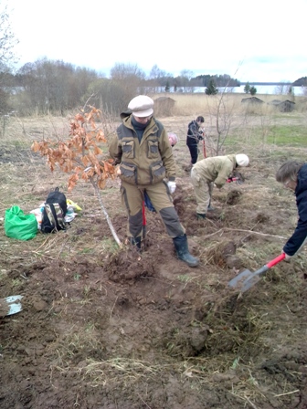 Работа прошла продуктивно, погода благоволила нам, в первой половине дня 30 апреля не было дождя и сильного ветра. Сажали на месте погибших или сильно пострадавших растений. Несмотря на не очень большое количество высаженных растений работа проведена огромная. Первоначально необходимо было выкопать из глинистой земли растения, загрузить их в автомобиль, а затем доставить к месту посадки. Около двухсот метров пришлось тащить их на себе, а некоторые дубы достигали размера до 2-х метров и для их успешной пересадки требовался большой земляной ком в корневой зоне. Короче, работа выполненная волонтерами была тяжелой.