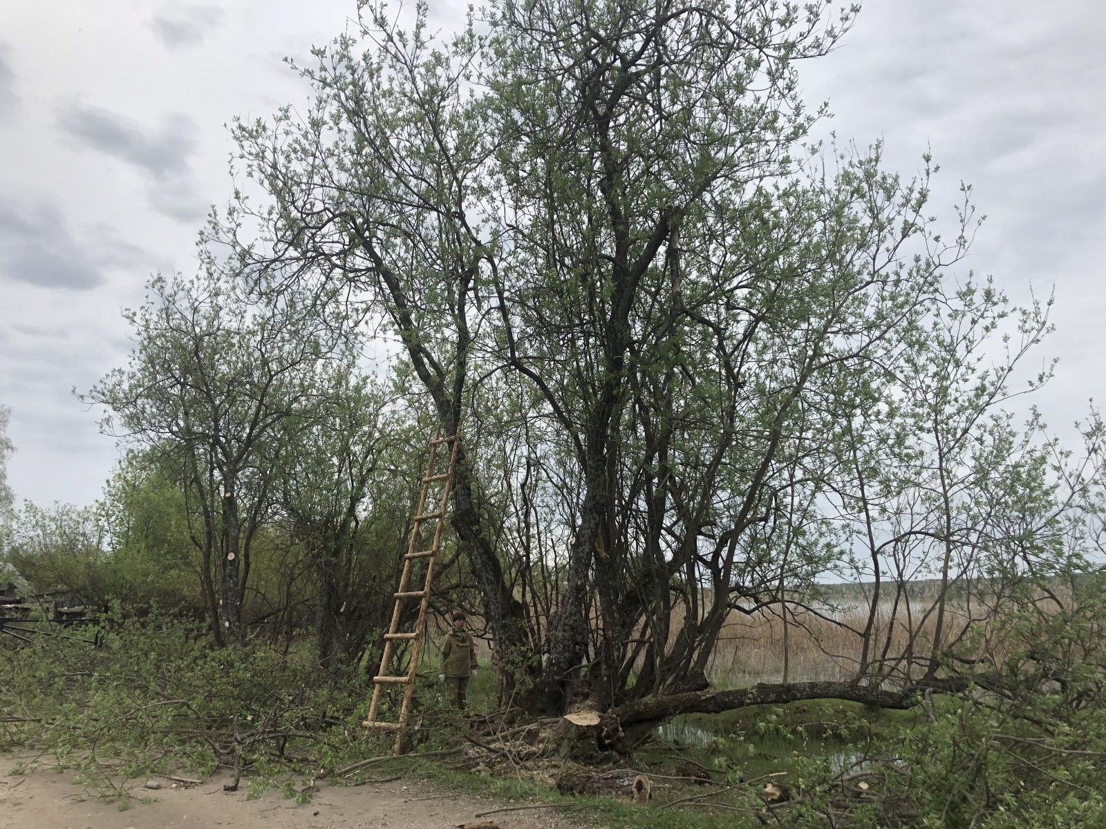 13 мая рядом с дирекцией национального парка кипела работа: сотрудники "Русского Севера" собирали прошлогоднюю листву, обрезали сухие, пораженные ветви черемухи и ивы, а также очищали территорию от мусора.