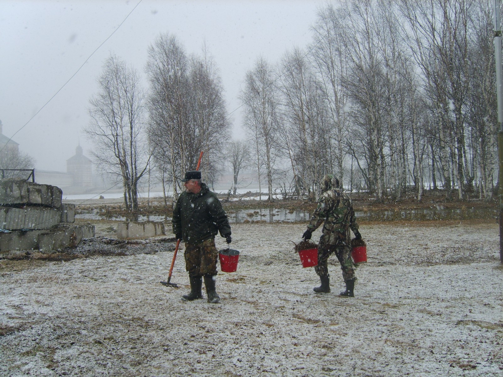 Погодные условия не способствовали созданию солнечного радостного настроения, так как с утра шел снег и небе было затянуто тучами. Но, несмотря на созданные погодными условиями сложности мы провели уборку на прибрежной территории озера Сиверское и с чувством выполненного долга пошли домой!