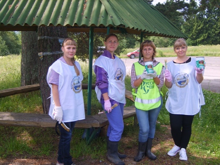 В качестве волонтеров в акции приняли участие представители Правительства Вологодской области ( Департамент Лесного комплекса, Департамент культуры и туризма , Департамент природных ресурсов, Департамент охраны животного мира) представители организации Волонтеры Победы, представители из учреждений образования и культуры, администрации Кирилловского района и конечно же члены Молодежного парламента Кирилловского района. Всего в работах участвовали 30 человек.