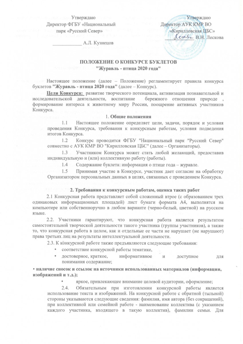 Национальный парк "Русский Север", следуя доброй традиции, объявляет о конкурсе буклетов, посвященных птице года - журавлю!