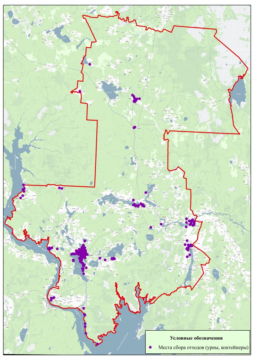 Информация по размещению мест сбора отходов (урны, контейнеры) с указанием времени и периодичности вывоза.